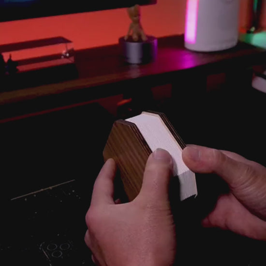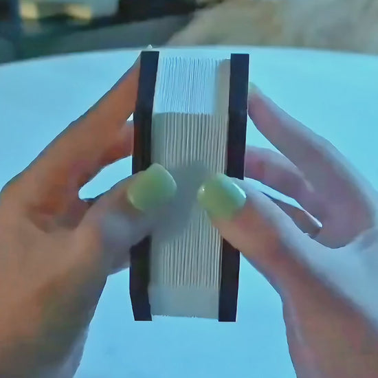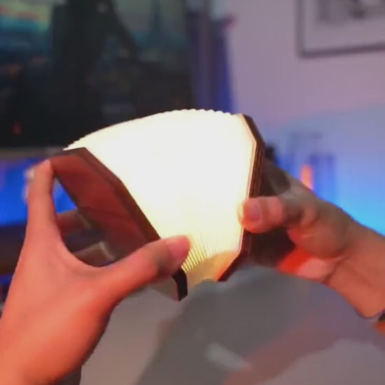 Crafted from premium DuPont paper, known for its tear-resistant and water-repellent durability, and elegant wooden panels, this lamp folds and bends into different shapes.
