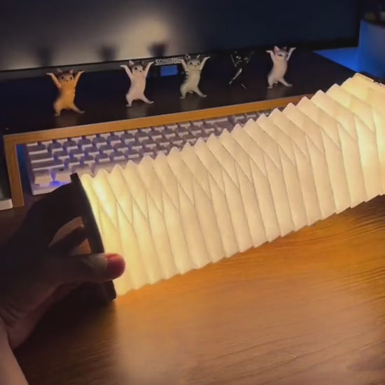 The pleated accordion structure creates a soft, diffused glow that feels organic and calming, whether you use it as a bedside light, desk accent, or decorative lantern.