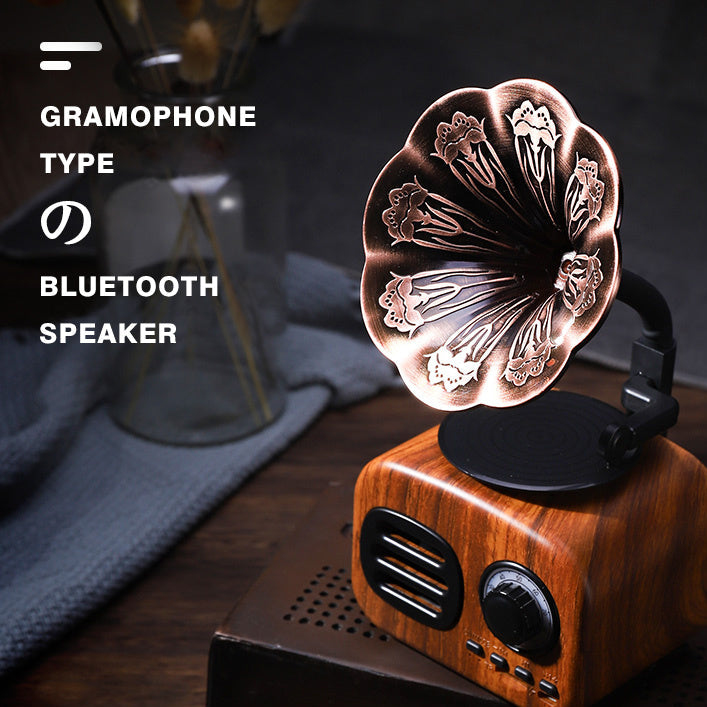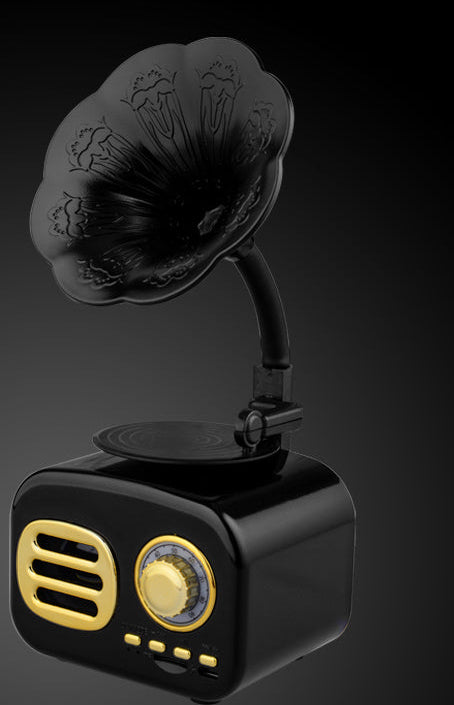 A mini masterpiece that blends retro charm with wireless functionality. Designed to echo the look of an antique phonograph, it features a decorative flower-style horn that adds a nostalgic centerpiece to any room.