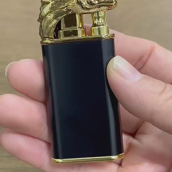 Light up with style using this double flame novelty lighter, crafted from durable metal and topped with a unique animal lid design. Featuring a clever dual-flame mechanism, it first ignites a windproof blue jet flame for precision, then seamlessly switches to a steady flame once the ignition button is released.